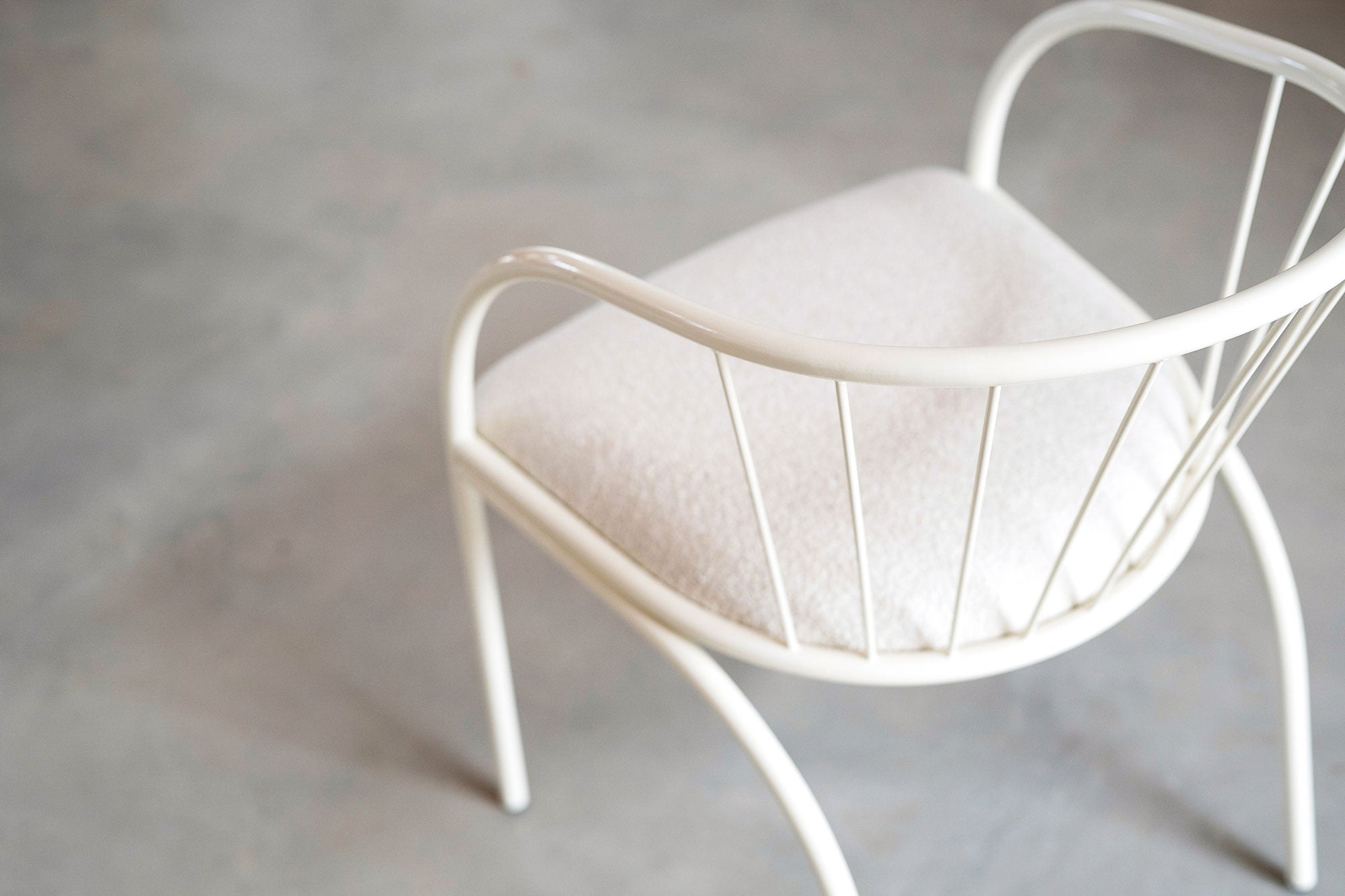 From a practical standpoint, we wanted to make something comfortable for dining or simply relaxing - where you are encouraged to sit back and feel held by the gentle curves of the armrests. We juxtaposed the chair’s smooth, steel frame with a soft upholstered seat that is either a rich, textured fabric or warm, genuine African leather.