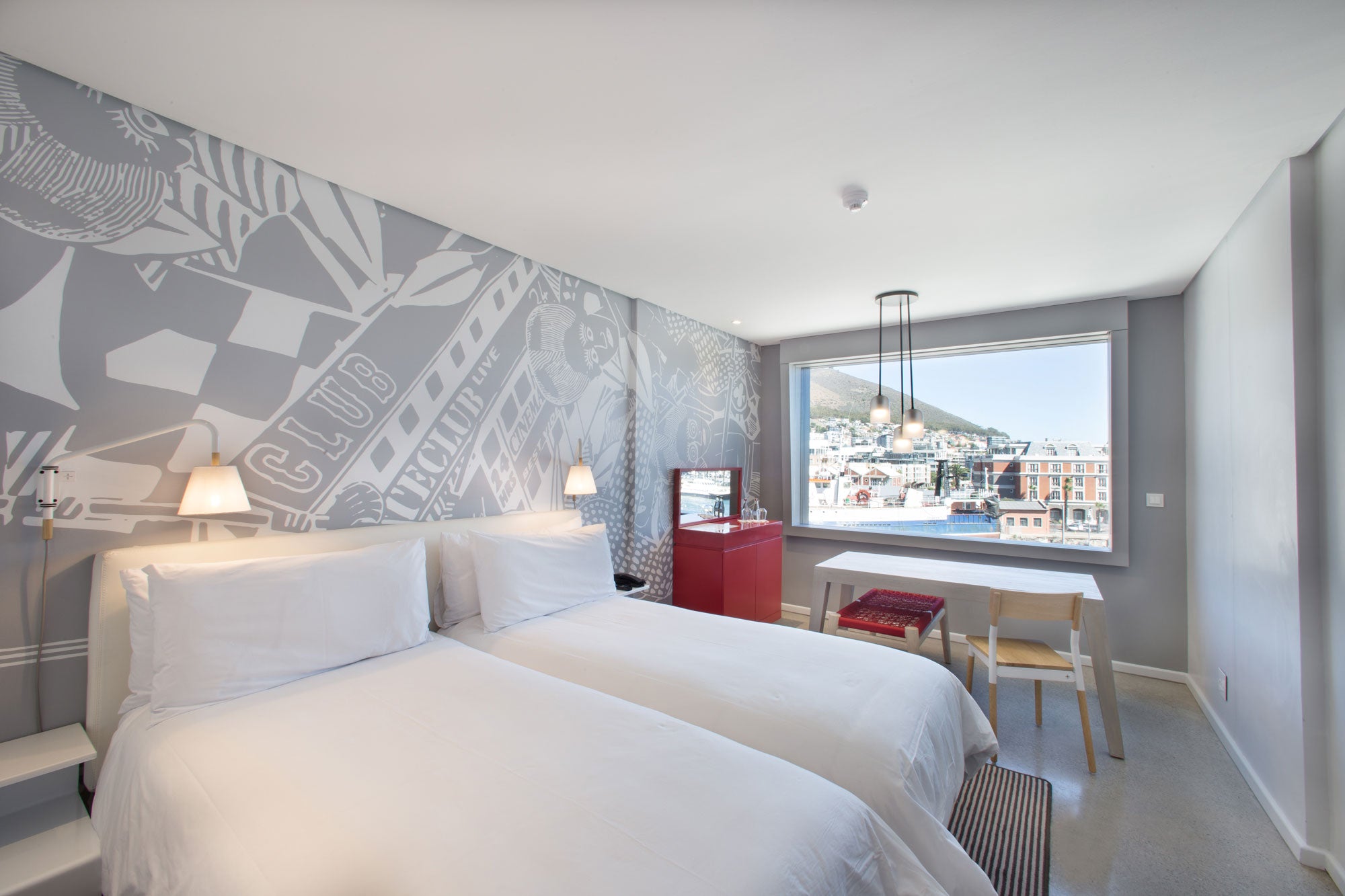 Views of the working dry dock and Table Mountain frame the rooms, with exceptional finishes throughout. We supplied our Firenze chair for each room, our Salisbury bedside lights, bins , and various other accessories around the hotel.
