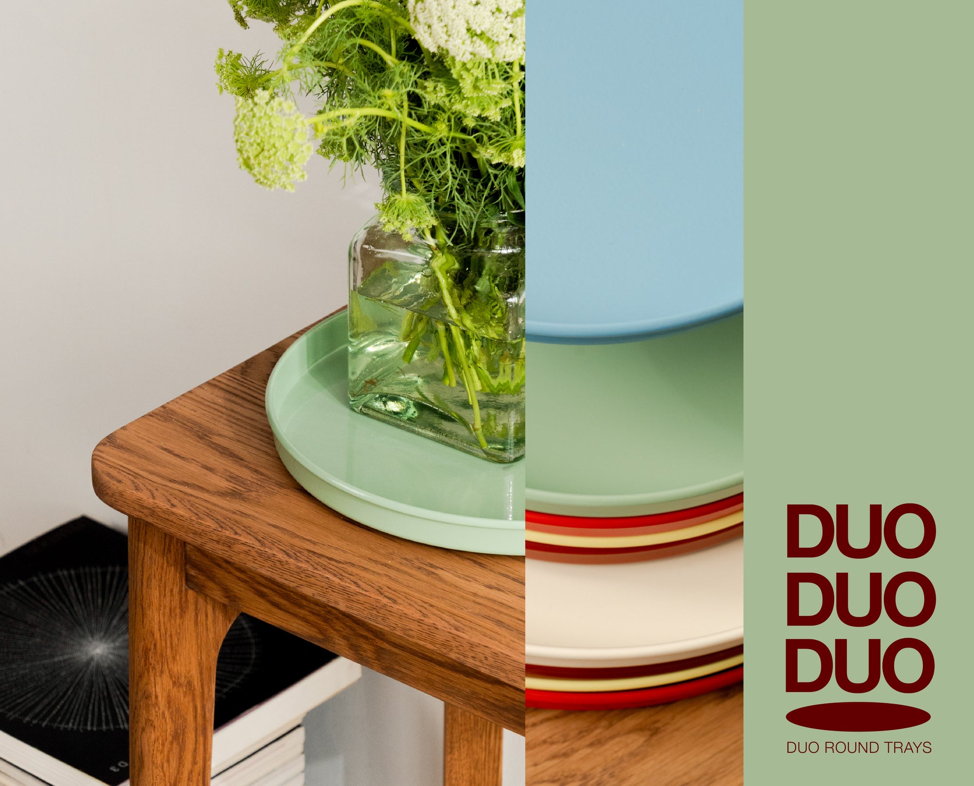 Designed and made in Cape Town, the DUO Round Tray is finished with a rolled edge for a comfortable grip and hidden feet, which creates a subtle floating effect.